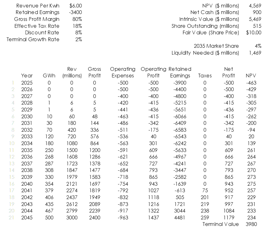 This should be considered a rough draft and definitely isn’t a polished valuation. That said, I think this can serve as a decent framework to iterate off of. As we receive more clarity on royalty pricing, production timelines, and OEM deals, we can quickly adjust our numbers here.