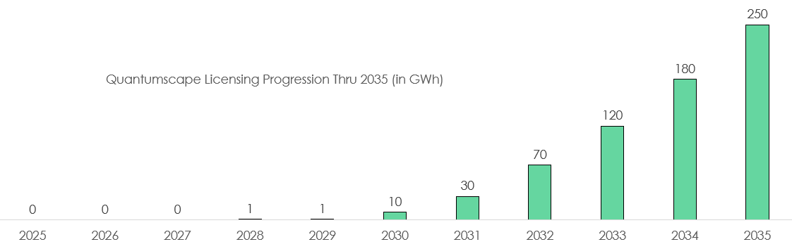 For the ramp schedule, I’m going to use similar starting numbers and timeline as the Bull Case, but a much slower ramp schedule. I will also assume fewer OEMs sign with Quantumscape over the long run.