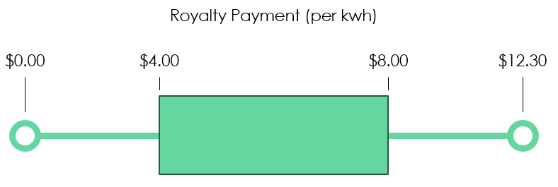 Royalty pricing is expected to be between $4 and $8 per kwh