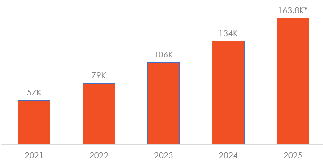 Note that all 2025 numbers are estimates based on year over year growth as of the third quarter. Dollar amounts are all annual.