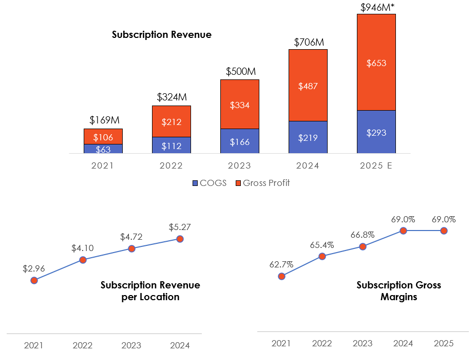 This is the most straight forward category to break down. It’s recurring revenue that should scale relatively well with the number of locations.